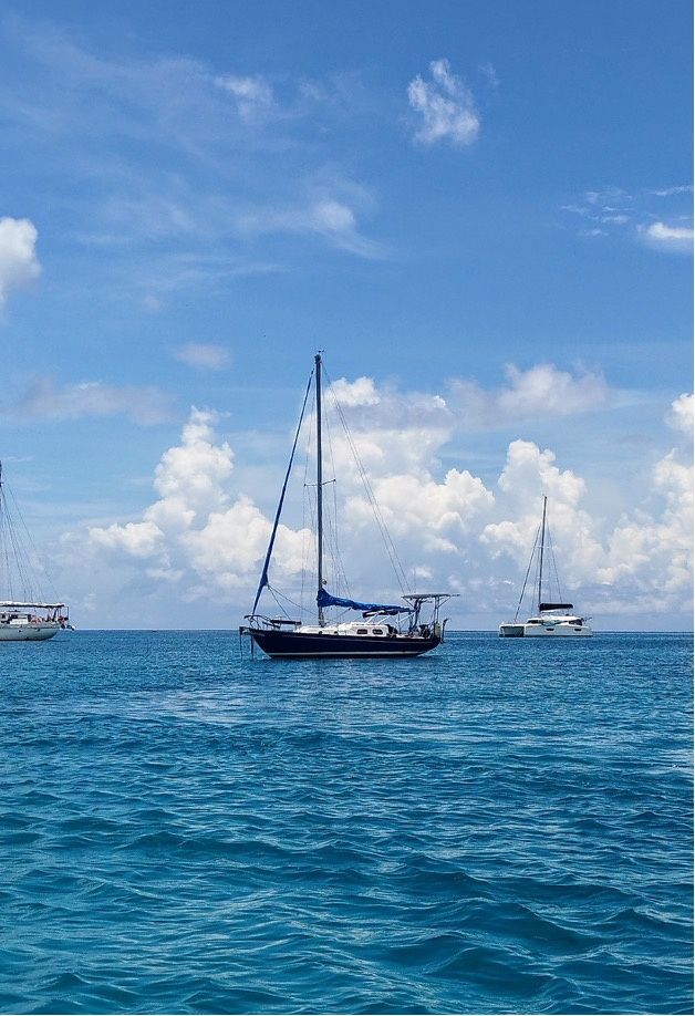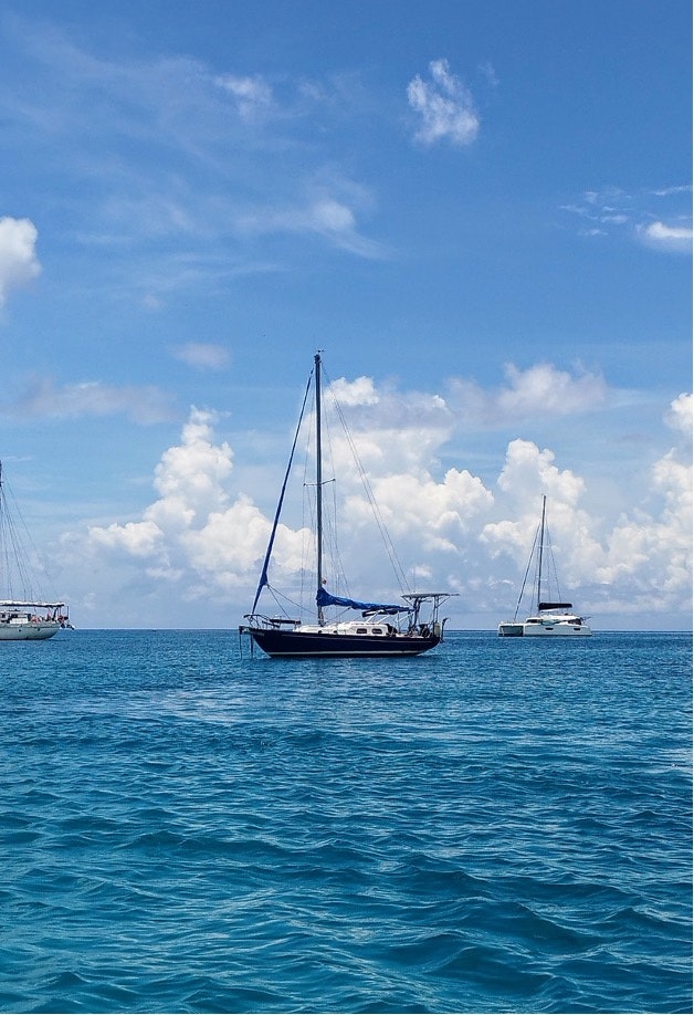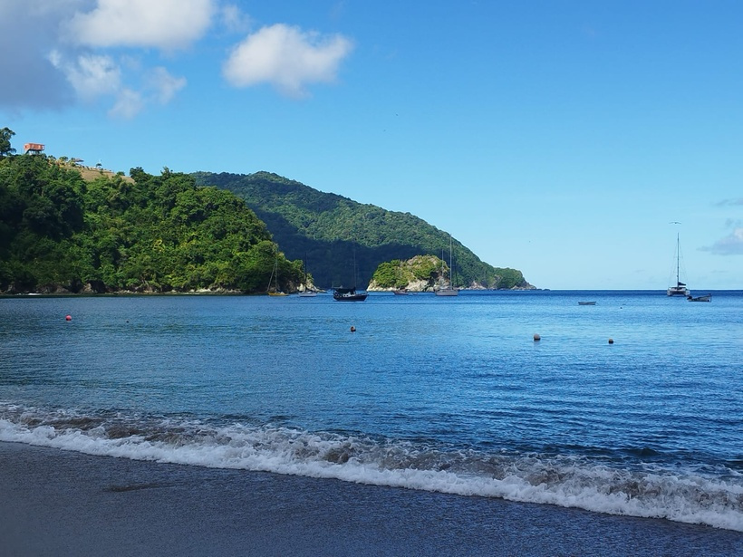 Hier, j’ai jeté l’ancre dans la baie d’Anse La Roche après une navigation vent arrière plus que satisfaisante. Valhalla glissant sur l’eau à environ quatre nœuds de moyenne. Au moment de quitter le mouillage à Tyrell Bay, j’ai tenté de le faire sans utiliser mon moteur mais je me suis dégonflé quand je me suis vu approcher dangereusement la magnifique goélette en bois d’Harold. Je suis rapidement arrivé à la conclusion que je pourrais garder cet exercice pour un autre jour dans une baie moins fréquentée. Anse La Roche est un tout petit mouillage et, à mon arrivée, un catamaran occupait déjà le centre de la baie. J’ai donc choisi un côté, me suis lentement approché des récifs au moteur, mis marche arrière et envoyé l’ancre par le fond. Une fois la chaine étirée, je me retrouvai tout près du catamaran mais pour une fois il me semblait que j’arrivais à visualiser le cercle d’évitement et je me dis qu’il n'y avait pas de quoi s’inquiéter. Au moins, je n’avais pas lâché mon ancre par-dessus la leur.