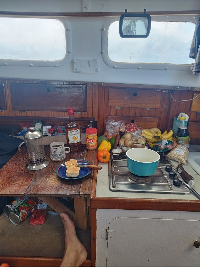 Comme dit plus haut, Valhalla est un légendaire Alberg 30 de 1971, un solide voilier monocoque à quille pleine comme on n’en fait plus de nos jours. J’ai confiance qu’elle sera à la hauteur de la tâche (en anglais, j’ai opté pour le féminin alors pourquoi pas le conserver en français, Valhalla aura la force tranquille du féminin). Elle est déjà équipée de presque tout ce qu’il lui faut pour la navigation au large excepté peut-être pour quelques points qui seront réparés ou résolus en route. Par exemple, la grande voile est plutôt âgée et il me semble que le bateau bénéficierait beaucoup d’une grande voile en bonne condition. La gazinière est fixe, et non pas sur un axe rotatif, ce qui rend la cuisine compliquée, voire impossible, lorsque le bateau gîte. Il y a un pilote automatique électronique mais un régulateur d’allure mécanique (windvane) serait bien plus fiable. Le reste tombe probablement dans la catégorie « nice to have ». Valhalla navigue, je peux jeter l’ancre, utiliser la VHF pour contacter les ports et les navires avoisinants, je peux, dans la plupart des situations, cuisiner, donc tout va bien. Et, comme le dit l’expression, le meilleur bateau est celui que l’on possède déjà.