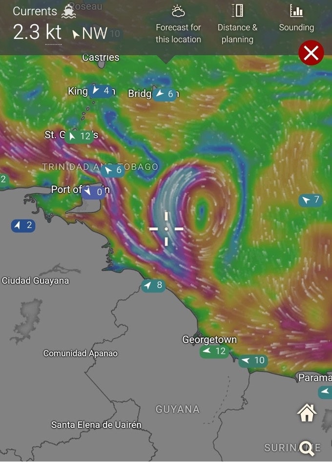 Ça pour sûr que je vais essayer, et comment ! Je vais même faire mieux que ça, je vais élaborer une stratégie pour trouver mon chemin de Trinidad vers le Brésil. J’en confiance dans mes capacités à atteindre la destination. Je suivrai peut-être les conseils de Cornell dans sa description de la route AT17 et naviguer près de la côte tout en restant dans la ligne de sondes des 30 mètres. Je pourrais même faire escale en Guyane, au Suriname et/ou en Guyane française. La météo marine incluant des prévisions de vent et courant devrait pouvoir être reçue via mon Garmin inReach.